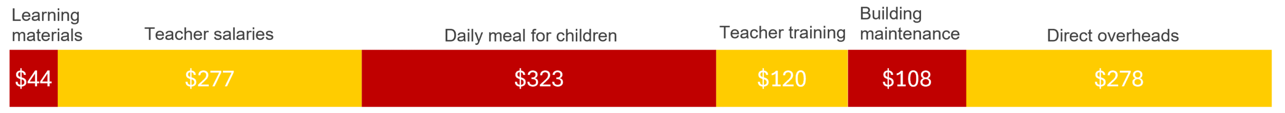 boNGO supports five Childcare Centers, where 503 children are cared for by 28 teachers. Monthly budget is roughly $1,150 (incl. – food for children, teachers´ allowances, supervision & teacher training, learning & teaching materials, building maintenance, and other expenses necessary for the development of the center).